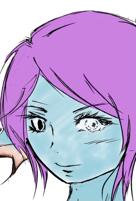 髪と肌の影部分に、ざらざら鉛筆で黒く荒く塗り潰し→オーバーレイで出したい質感に近づけた気がする(*゚▽゚*)♪