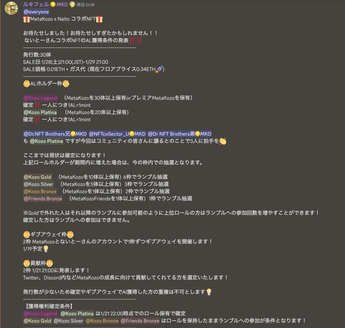 #MetaKozo MetaKozo x Naito コラボNFTの詳細が発表されました😍🔥🔥 1/28セール予定でAL取得条件は以下の通りになります☺️