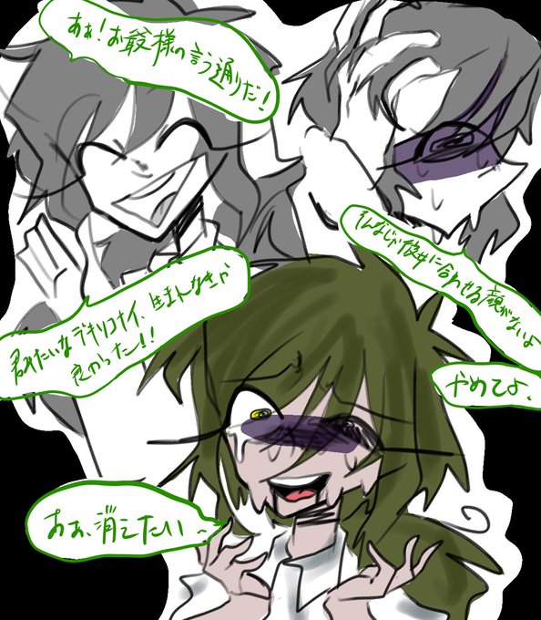 今日キャラシあげた2人+ティックさんで精神病組だよぉおおぉよろしくぅううぅぅう💊🩸🍭 #不幸の噂 #不幸の被害者