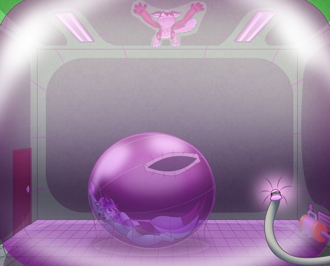 Commission for @railgunroulette, asking for a balloonie Zorua inside a pink balloon and stretching it a bit.