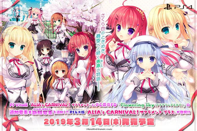 2019年3月14日発売予定 PlayStation4版『ALIA’s CARNIVAL! サクラメントプラス』の発売が発表されました。コンシューマー版のサイトにて製品情報が公開されました!https://t.co/r55ISHp5zx #アリアズ