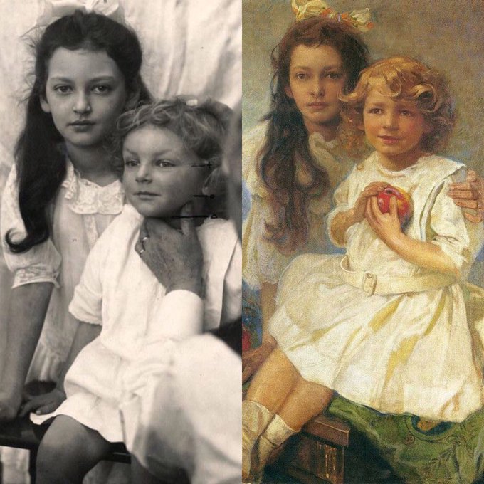 A fascinating look at the artist's process. Alphonse Mucha is an icon of the hyper-stylized art nouveau movement, but all of his works used real models. Luckily for us, many of these model photos survive! Click and scroll for more: https://t.co/6JEIHlPBDP