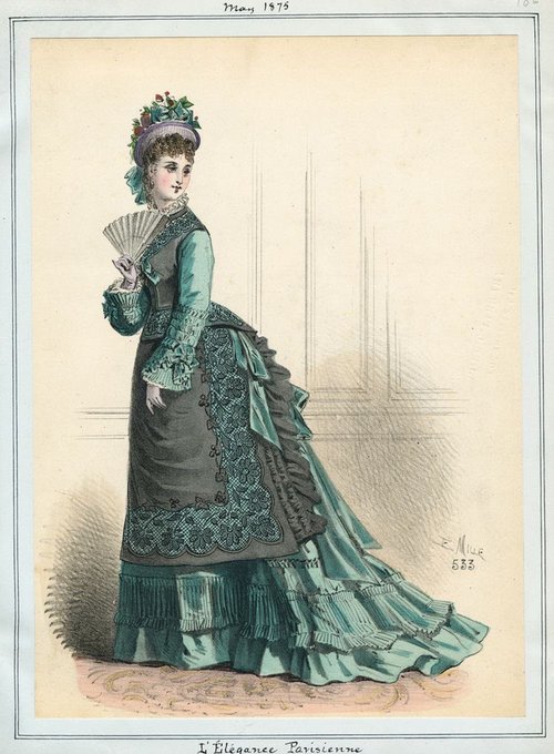 Happy May! Time to bring out the soft spring colors, like the ones used in these bustle gowns from this month in 1875. Via @LAPublicLibrary. #arthistory https://t.co/6lnoIgj4ge