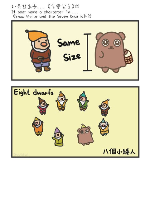 If bear were a character in Snow white and seven dwarfs, bear can be a good friend to dwarfs.🐻