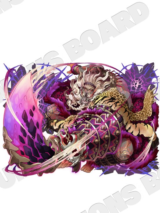 #サモンズボード #1日1ドロップ 毎年この時期にロードリアに遊びにくる覇王 最速8ターンの突撃&反撃付与スキルは、反射やクロスカウンターには弱いもののかなりの高倍率であり自身の矢印との相性も中々 LSは闇とHPタイプで分かれており、闇属性ならタイプに関係なくサポートに組み込めるのは大きい