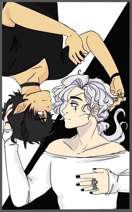 FINALLY POSTED! My art trade with @KatDensetsu , our ocs together 🖤🖤🖤
