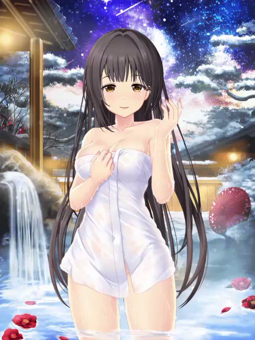 Phew, is it me or is it gettin' steamy in 'ere? I guess they're called hot springs for a reason! I'm gonna soak in the water with this lass 'til my paws get all wrinkly! A Winter Gift Event starts today! #dreamgf