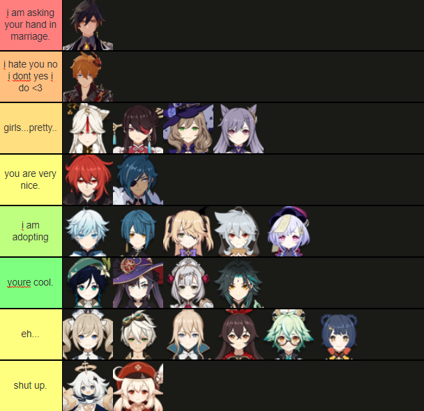 anyway i give 2 genshin tier lists because i love posting my opinion online.