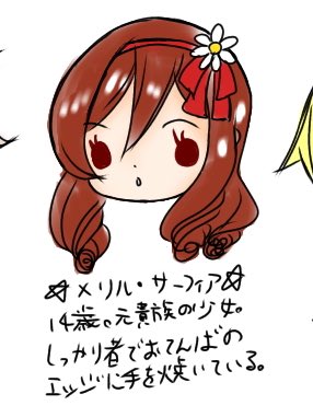 記憶喪失の少年。ローデル教会引き取り孤児。天真爛漫でフェミニスト。可愛い子や綺麗な女性を見ると見惚れてしまう(メリルや、ローデル教会の女子達は別)。