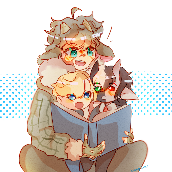 Big tubbo reading to his two small friends <3