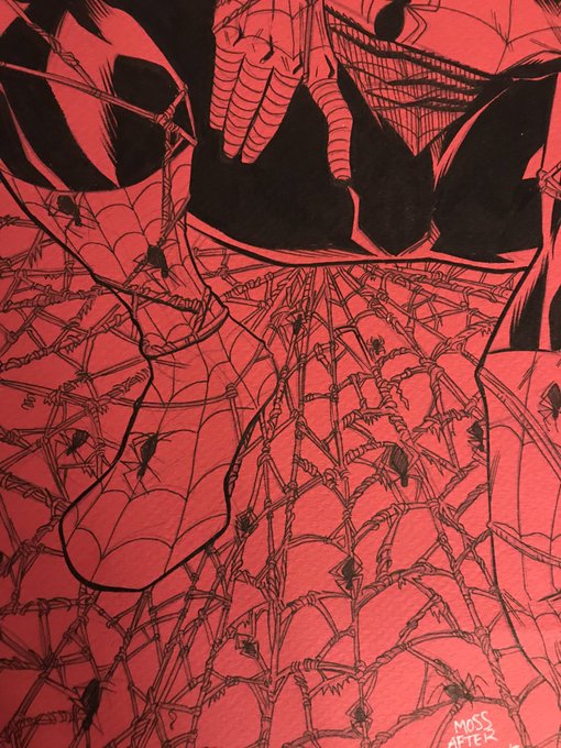 #spiderman cover recreation. Much respect to #toddmcfarlane those webs were a killer. #marvel #comics #wip. Going to color spidey sometime. Will be for sale when finished