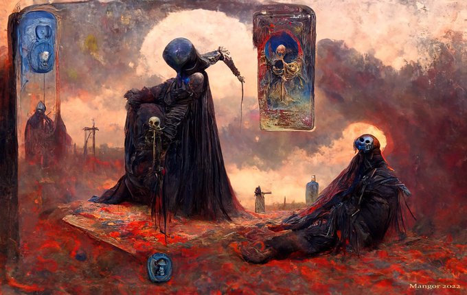 more from the death card batch #tarotcardart #tarotart #deathcard #majorarcana #bekinski #occult #occultart #digitalart #aiart #generativeart #drmangor #mangorart #discodiffusion #aiartists #aiartcommunity