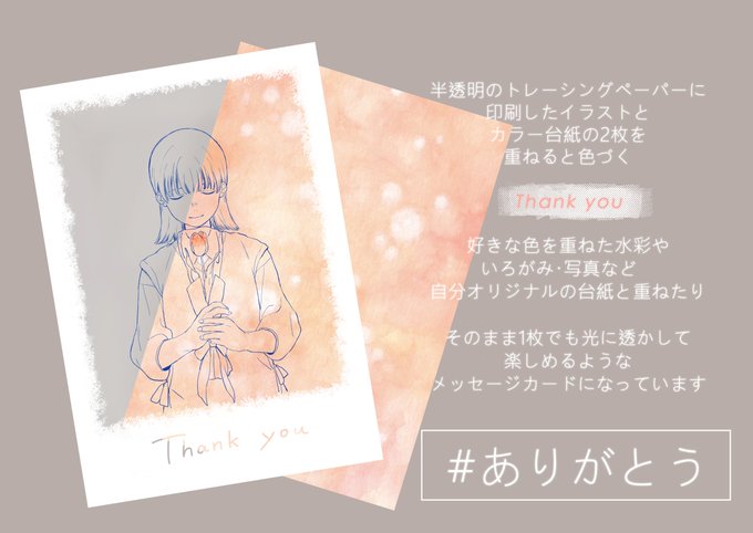 【ポストカード展 4日目】 今日の1枚は #ありがとう のメッセージカード 光にかざしてみたり 贈る相手のイメージに合わせて、台紙を変えてみたり いろんな雰囲気を楽しんでもらえたら 嬉しいです。 ありがとうの気持ちが届きますように! #plusP16