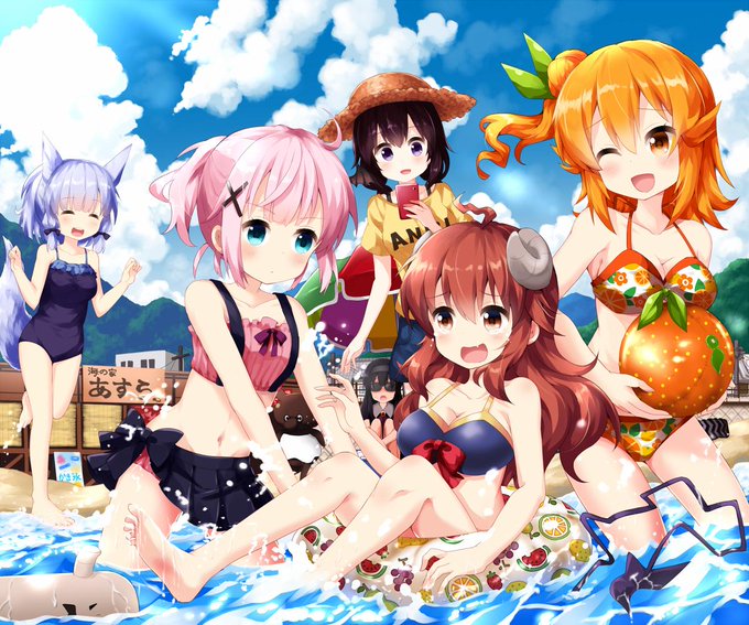 #きんいろモザイク版深夜のお絵かき60分一本勝負 (お題:海水浴)アリスとカレン