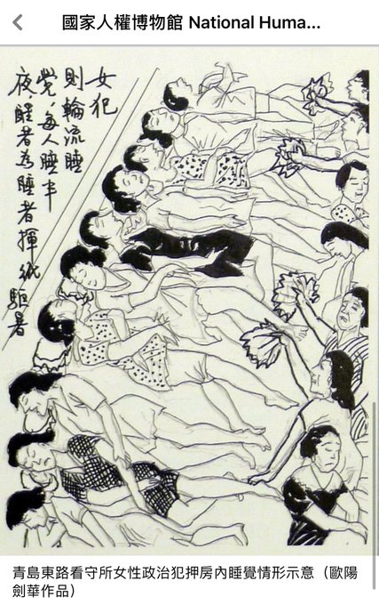 國家人權博物館 白色恐怖下的女性受害者畫像,她們如何在擁擠的押房內共同生活,在刑求下如何保護自己和胎中的孩子? 國民黨怎麼還有臉說保護台灣人。 https://t.co/8JqwCNu2N6