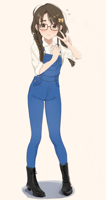 お題箱よりオーバーオールを着て恥ずかしそうにピースしてる奥山沙織さん!