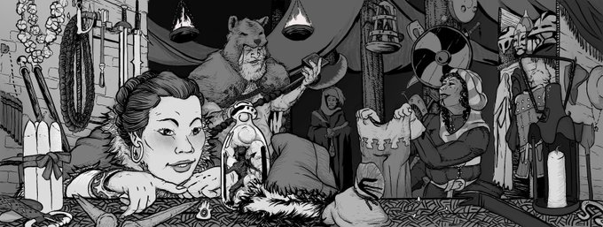 One of the things I love about drawing adventuring parties is adding details that connect the characters: the affirming touches, the exchanged glances, the subtle gestures of a group of people who rutinely trust eachother with their lives.