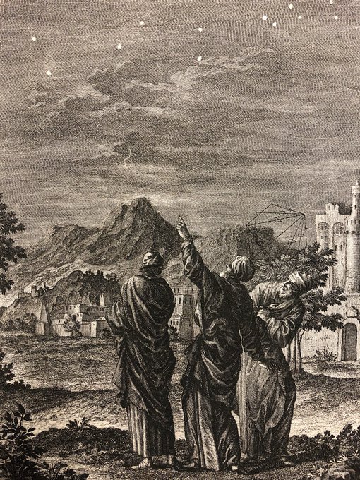 星々と観測者(占術師)。1730年代ショイヒツァーの神聖自然学より。