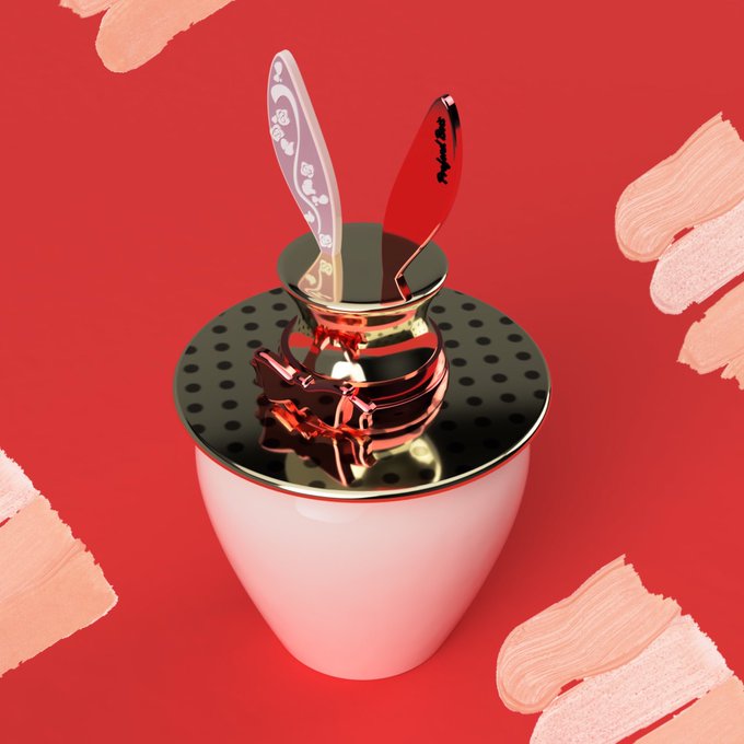 ミルキーな質感のリキッドファンデーション。カメオ調と刻印の左右異なるうさぎの耳がポイント。