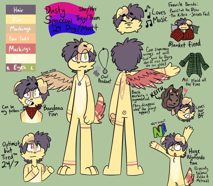 💖 Dusty Sparrow! A brand new reference with some design changes that I absolutely love. She goes by Dusty or Sparrow and any pronouns are fine 💖