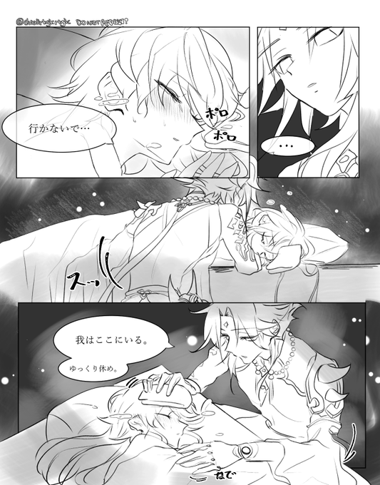 風邪ひいた空くん.. #魈空 #Xiaoaether *左→右... (4/6)