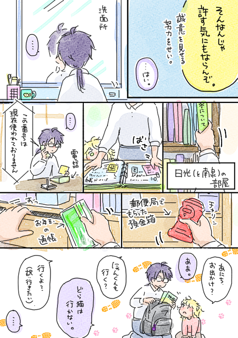 幼少期日光くんの幻覚は次回の日光君の家出ネタでラストです。問題は御前が車を運転するシーンを私が描けるのかと言う点……ダメだったらそのコマに「車内」って書きます。