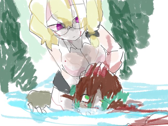 ⚠️流血 ゾゾ先輩が川でむかでを溺れさせてる絵です