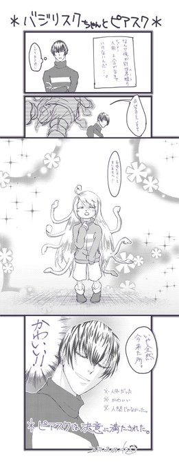 カロンちゃん(@calone062 )とこのバジリスクちゃんとうちのピアスクを絡ませていただきました!