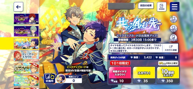 1枚目のガチャの単発チケで星5出んの神すぎだろ マジで来ると思ってなかった虹演出でガチトーンの「え?」が出た しかも推し寄りの燐音!! 勝ち組🤟🤟