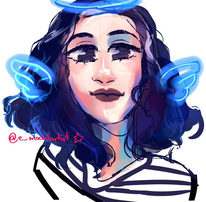 Ésto es lo que pasa cuando no soy paciente y quiero sacar un dibujo en chinga, por suerte ya lo arreglé y le agregué a mi cara dos cosas que no me dibujo mucho uwu, la luna, y que se me hacen hoyuelos cuando sonrió ✨💙💫
