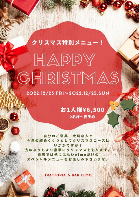 クリスマスコースのご予約もお待ちしております