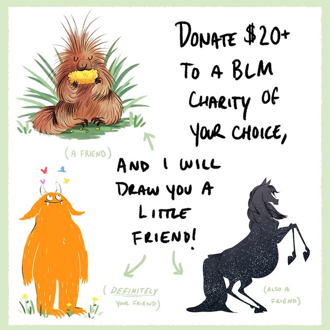 I'm doing commissions for donations to any BLM charity!! DM me if you'd like a little new friend