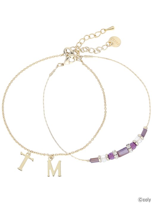 都築兄弟イメージのパープルのイニシャルブレスレットセット💕