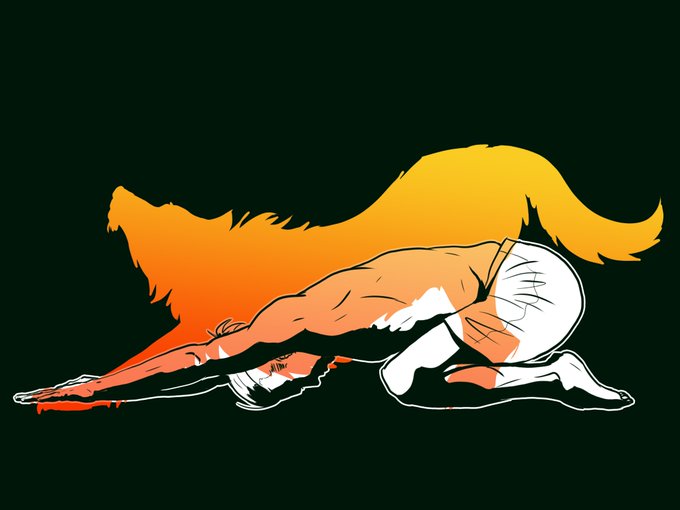 Anfänger-Yogi #Fianna "Sandfur" Mike macht extended child's pose.