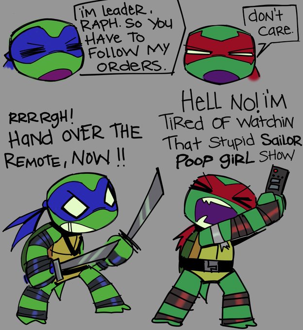 i had to figure out how my raph and leo got their facial scars!!! raph got his from a fight over the tv remote w leo