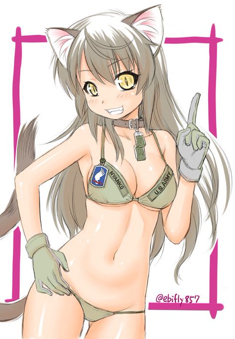 夜に上げた絵の差分。ねこヴィキニ