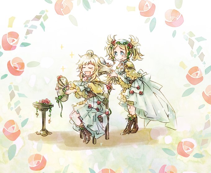 ポニテ水着オフェちゃん描いたときに、リズに髪結ってもらったのかな?てリプを頂きまして、つい描いてしまった落書き愛のリズっちとオフェちゃん☺️お~そ~ろ~い~で~♪