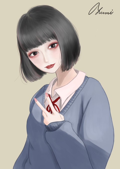 #イラスト #イラストレーター #ぱっつん #ショートボブ #地雷系メイク #イラスト好きさんと繋がりたい #絵描きさんと繋がりたい #アイビス #地雷系女子 #女子高生