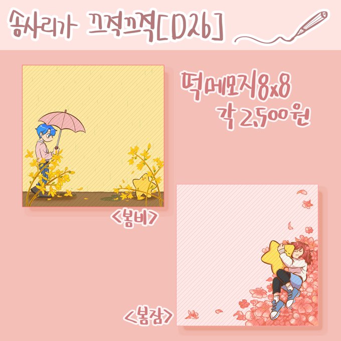 죠금.. 많이 늦은 문구온(@moongu_only) 부스정보 입니다. 메모지는 이번 문구온에서만 2,500원에 판매되며 이후 500원 인상될 예정입니다^^! 인포에는 추가 못했는데 사각스티커도 소량 들고가요오,,,! 많이 들려주세요>0<!!