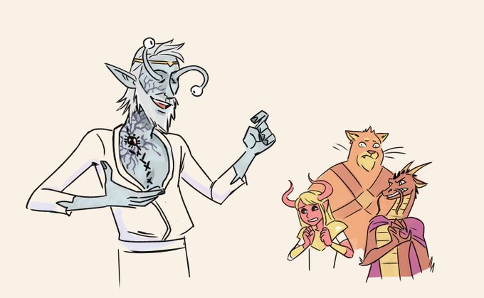 Played a dnd oneshot last weekend where we all had to make new characters! pictured: @thewallflyer @LooneyVoltage me @Fantasticon86 and @TimHuttonAu thanks to @djrhutton for DMing :)
