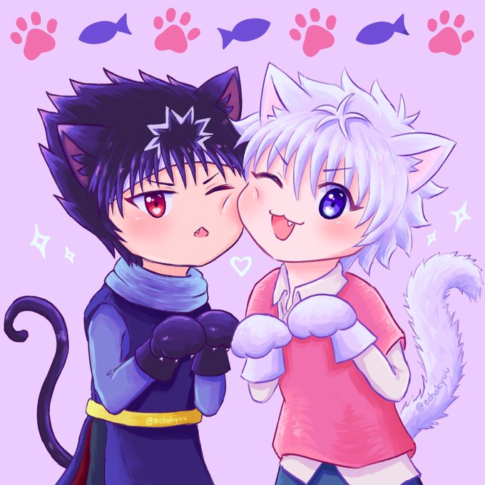 🐱catboy x catboy🐱 the togashi catboys please forgive my self indulgence #yyh #hxh #hiei #killua