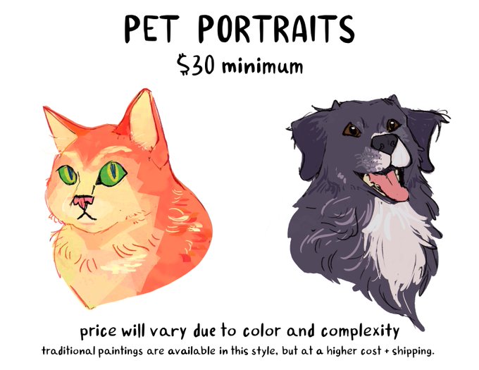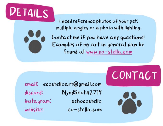 I'm also doing pet portraits if that's your jam instead! Contact info is in the second picture, and more of my work in general is at https://t.co/081M7jJsfK