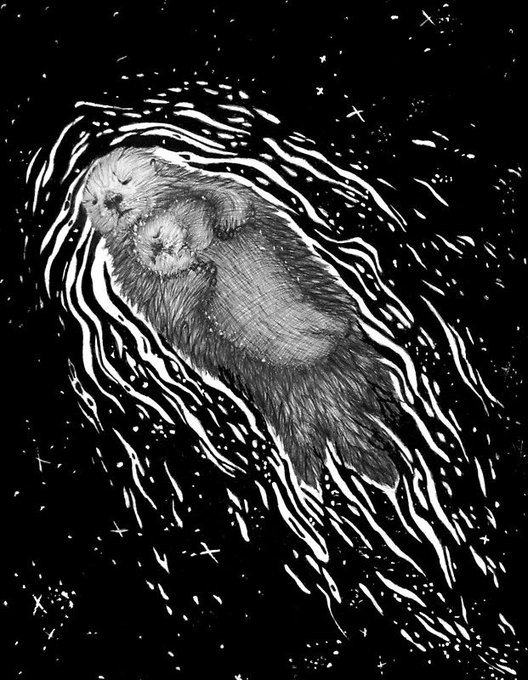 ‘Sweet Dreams, Little Otter’ by ECMazur https://t.co/PU1dG8MOFq #penart #illustration #otters