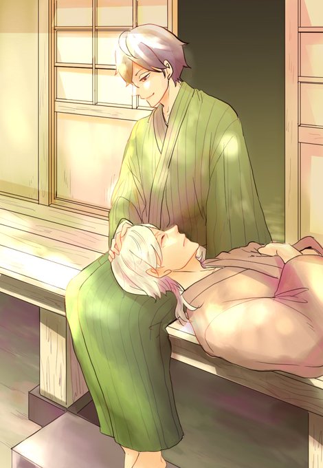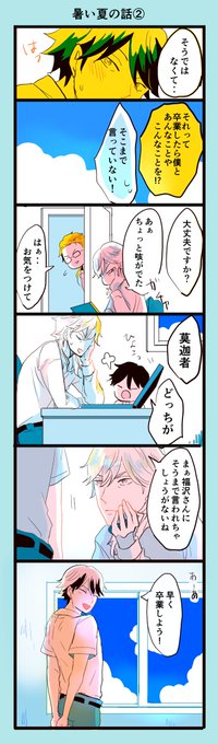 夏の社長を描こうと思ったけど一人だと可哀想だから乱pさんを足したら 、これから麦茶〜‥みたいなことになった絵です