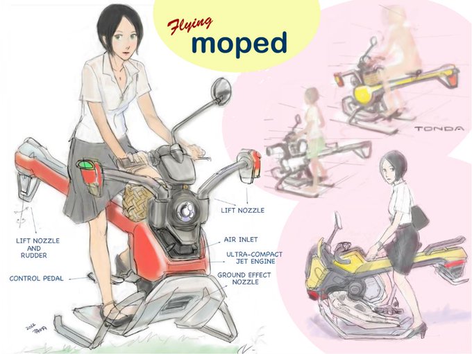 以前(4年程前)描いたもの。今ならマルチローターが現実的かなと思うけど、やはり安全面から回転物を露出させたくないなと思ったり。