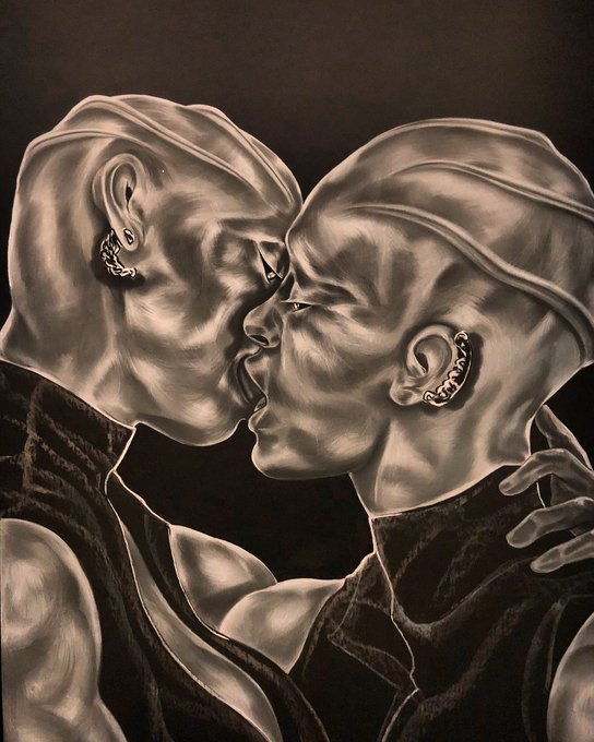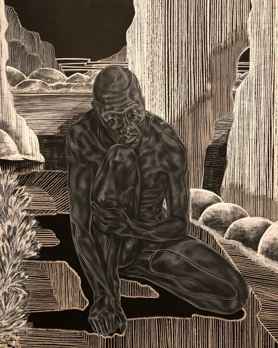 Toyin Ojih Odutola’s @barbicancentre show imagines a fictional prehistoric civilisation dominated by female rulers, served by male labourers (each group forbidden from relationships with the other) — set in a surreal landscape, inspired by Nigeria’s Plateau State rock formations.