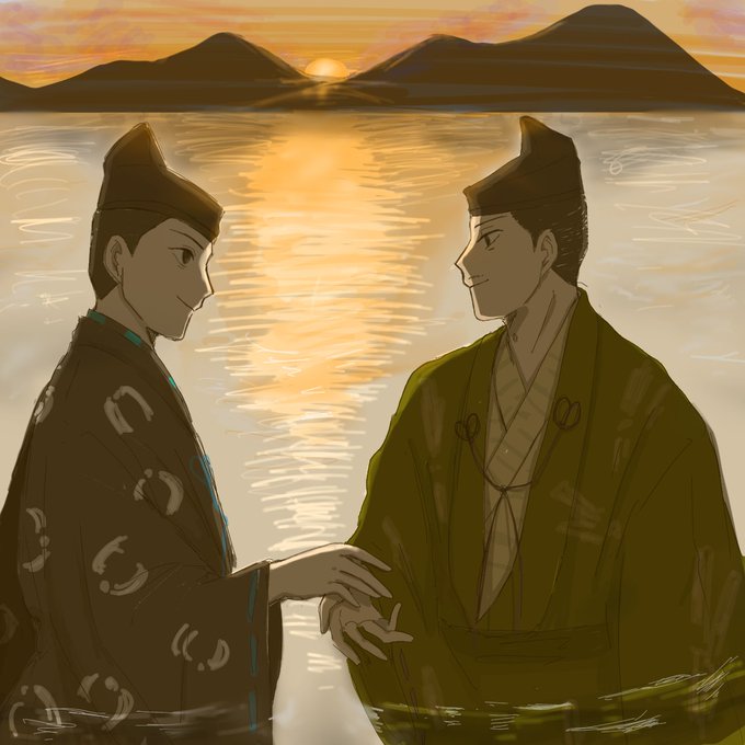 この頼家泰時実朝の三竦み大好きなので気に入ってる過去絵に色塗った #殿絵