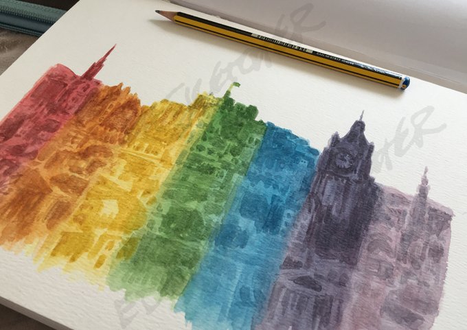 My new rainbow watercolour of Edinburgh's skyline is now available to buy as a print with either white or rainbow background. 10% of sales goes to @NHS_Lothian Covid-19 Appeal.