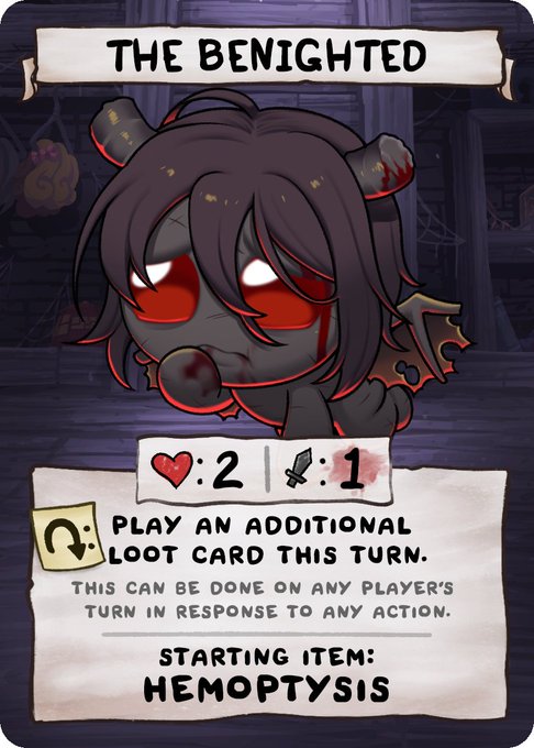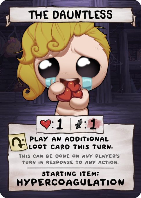 The Deserter! ( tainted Jacob )... this card is insane. his starting item Anima Soula actually becomes The Revenant ( tainted Easu ) allowing you or others to attack it gain its rewards, each time it dies your item flips back and you loot 1. https://t.co/jTLENJcqmR