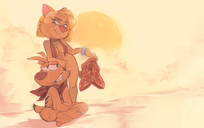 Wallpaper for this month! Featuring Ty from Ty the Tasmanian Tiger and his very special and daring friend Shazza...Ty still needs to get used to the idea of a nude beach lol...